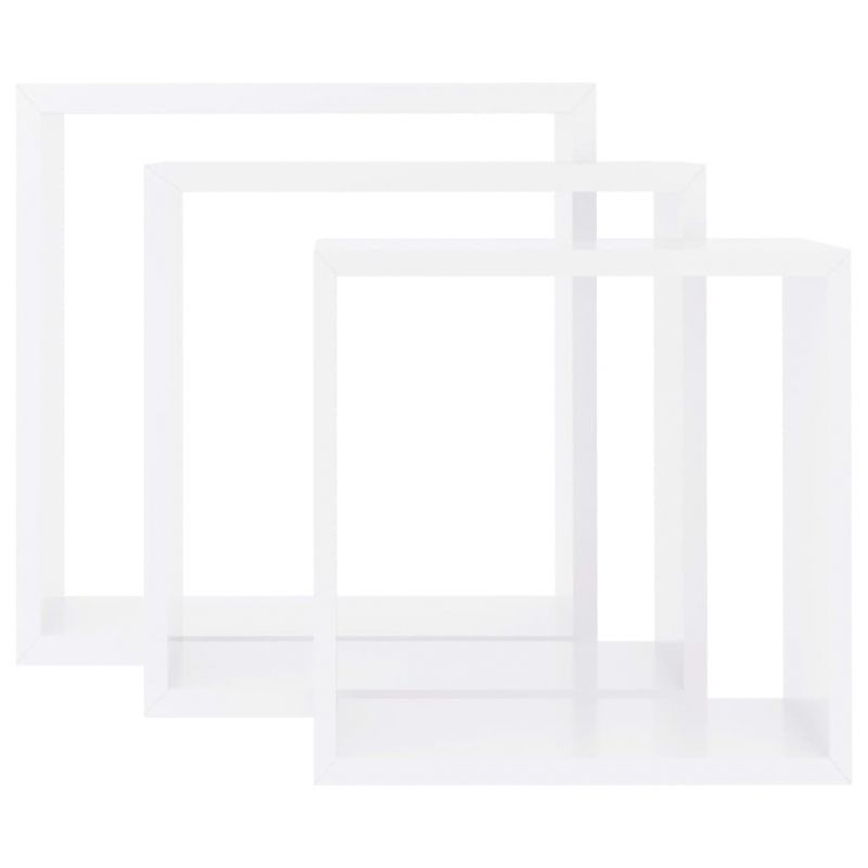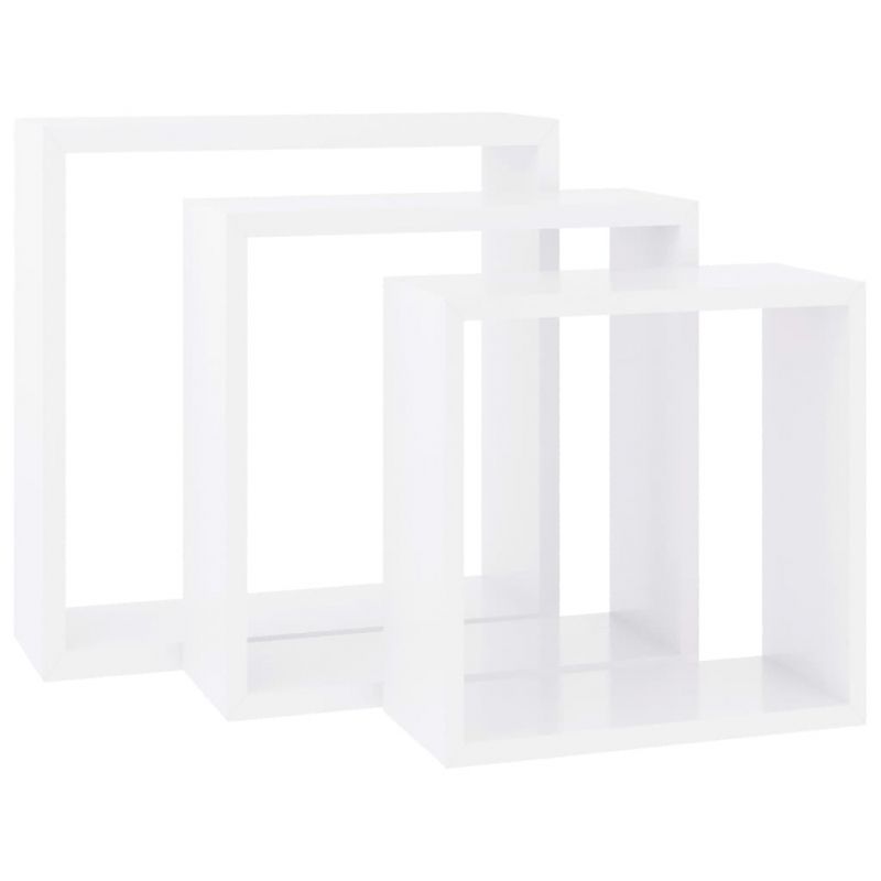 Стенни кубични рафтове, 3 бр, бели, МДФ