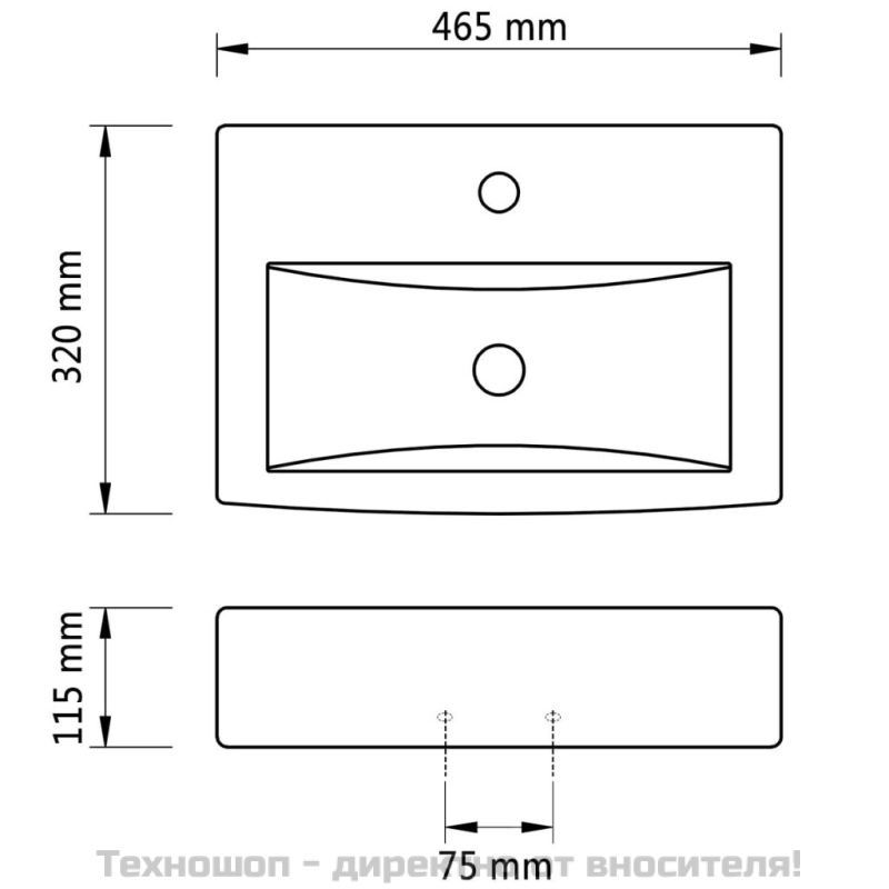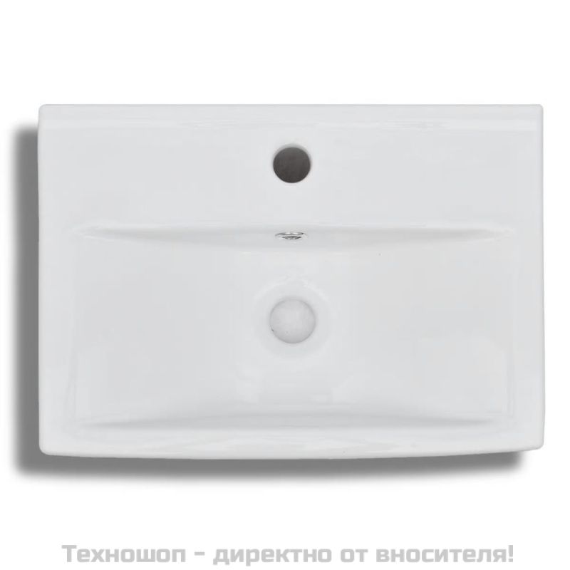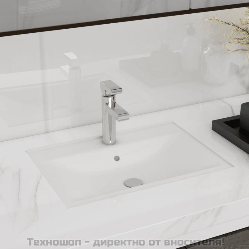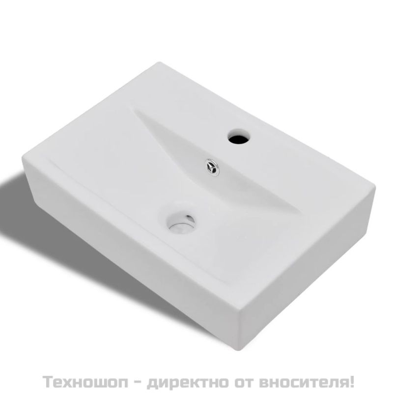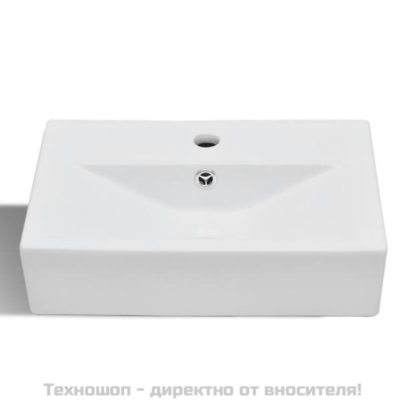 Керамична правоъгълна мивка с преливник отвор за смесител бяла