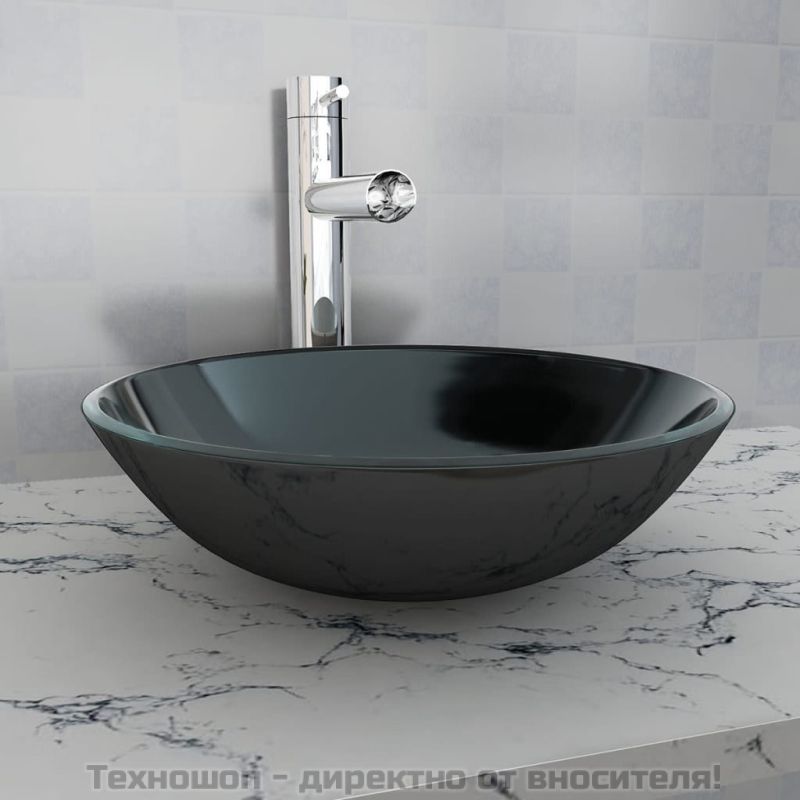 Мивка от закалено стъкло, 42 см, черна
